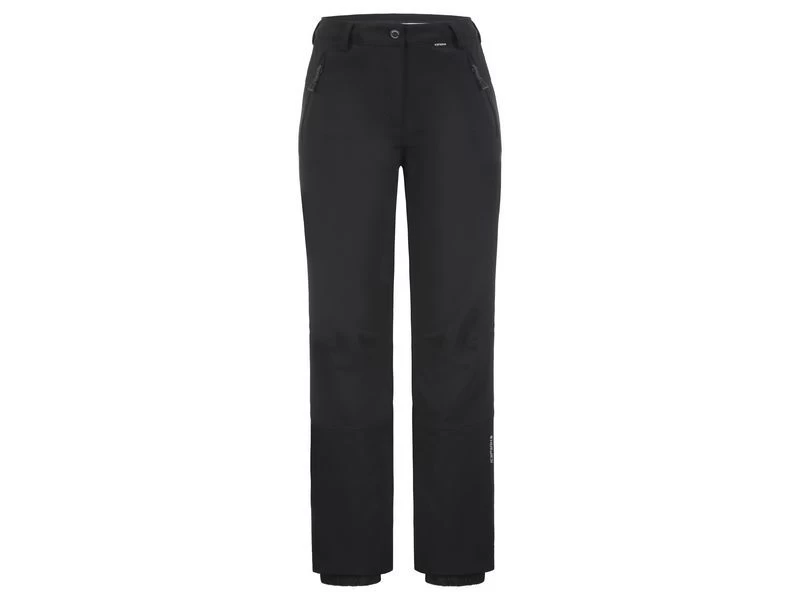 Een softshell skibroek van Icepeak voorzien van zakken met ritsen. Dit model valt normaal en heeft sneeuwvangers in de pijpen. De broek is gemaakt van het zachte softshell materiaal en de taille is aan de achterkant iets verhoogd voor extra comfort. Deze icepeak dames ski broek Frechen is wind- en waterdicht met een waterkolom van 10.000mm.