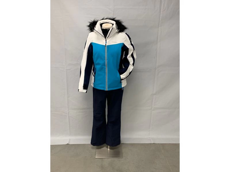 Deze mooie en warme ski jas heeft aan de voorzijde twee afsluitbare zakken en heeft in de mouw een zakje voor een skipas. De jas heeft een afneembare capuchon met een afneembare bontrand. Verder heeft de jas een vaste windvanger. Het jack is wind- en waterdicht, de naden zijn getaped. De ski jas Florance van Icepeak is goed te combineren met de skibroek Noelia van icepeak.