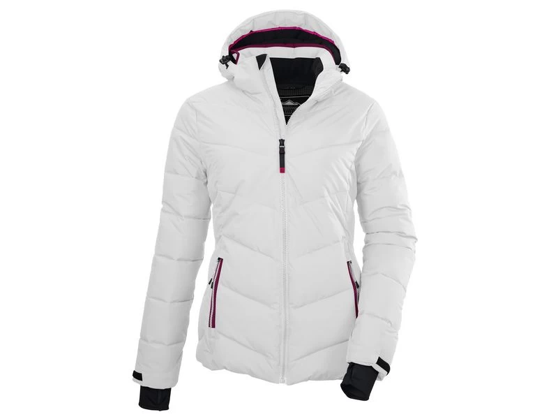 Deze ski jas KSW 289 voor dames, is een modieuze jas waarin je lekker warm blijft tijdens het wintersporten. De jas heeft aan de voorzijde 2 afsluitbare zakken en een zakje voor een skipas. De jas heeft een afneembare capuchon en een vast sneeuwvanger.