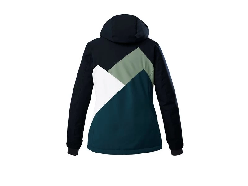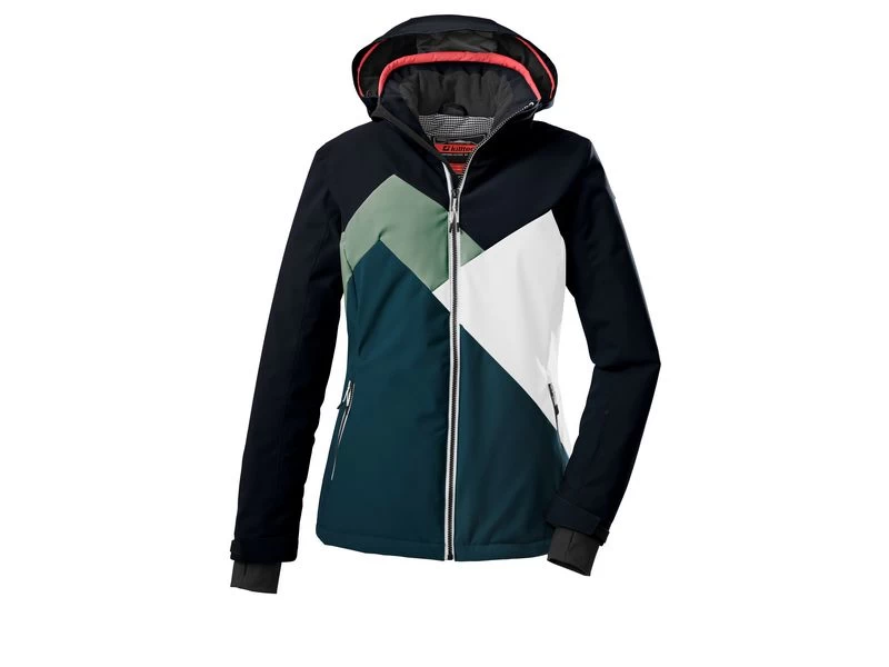 Een prachtige en sportieve ski jas voor dames in grote maten. In deze ski jas KSW 83 van Killtec kan je in stijl de berg af skiën. De jas heeft aan de voorzijde 2 afsluitbare zakken, de capuchon is verstelbaar en afneembaar en de jas heeft een vaste sneewvanger. De jas is wind en waterdicht en de naden zijn getaped.